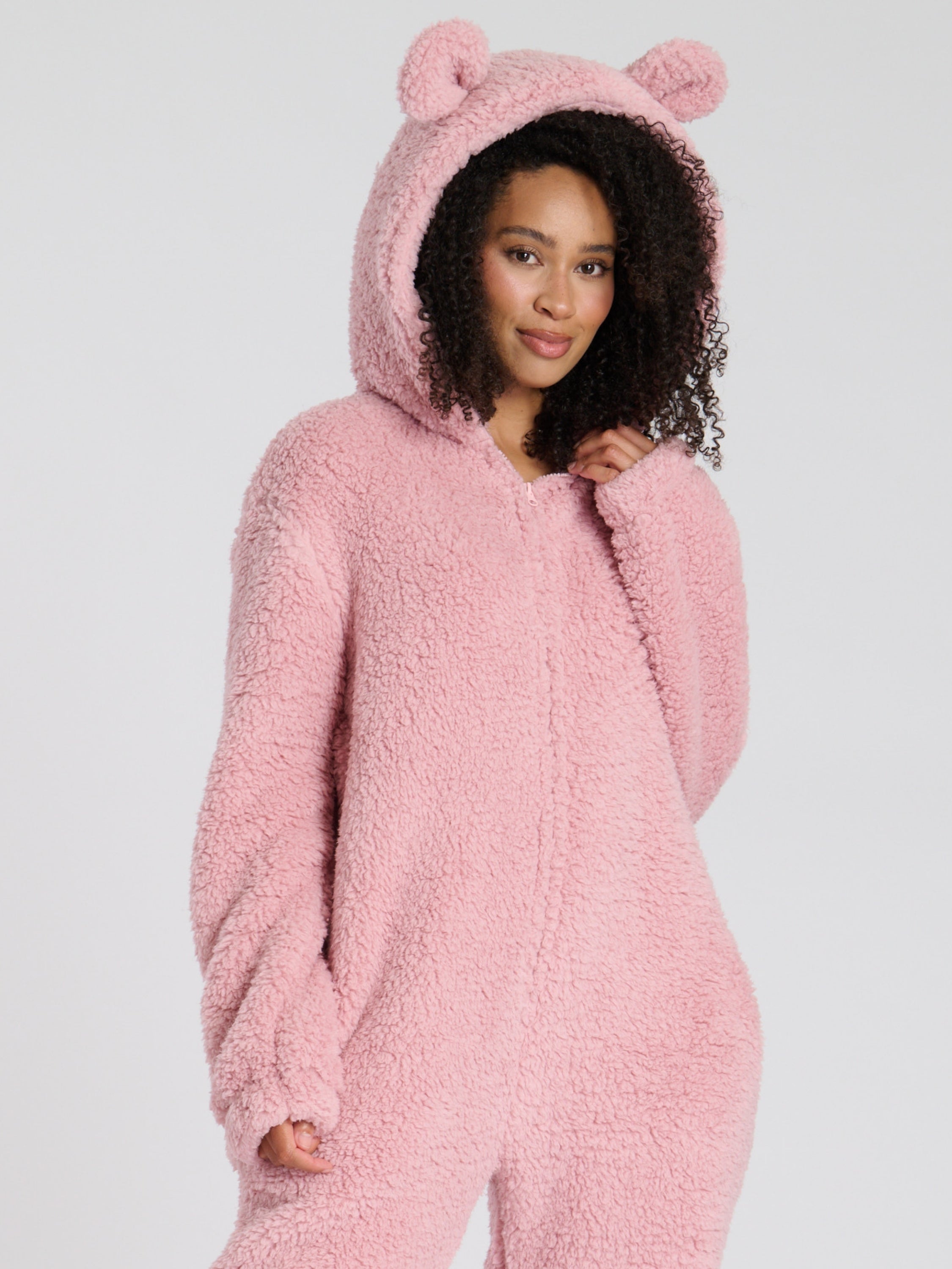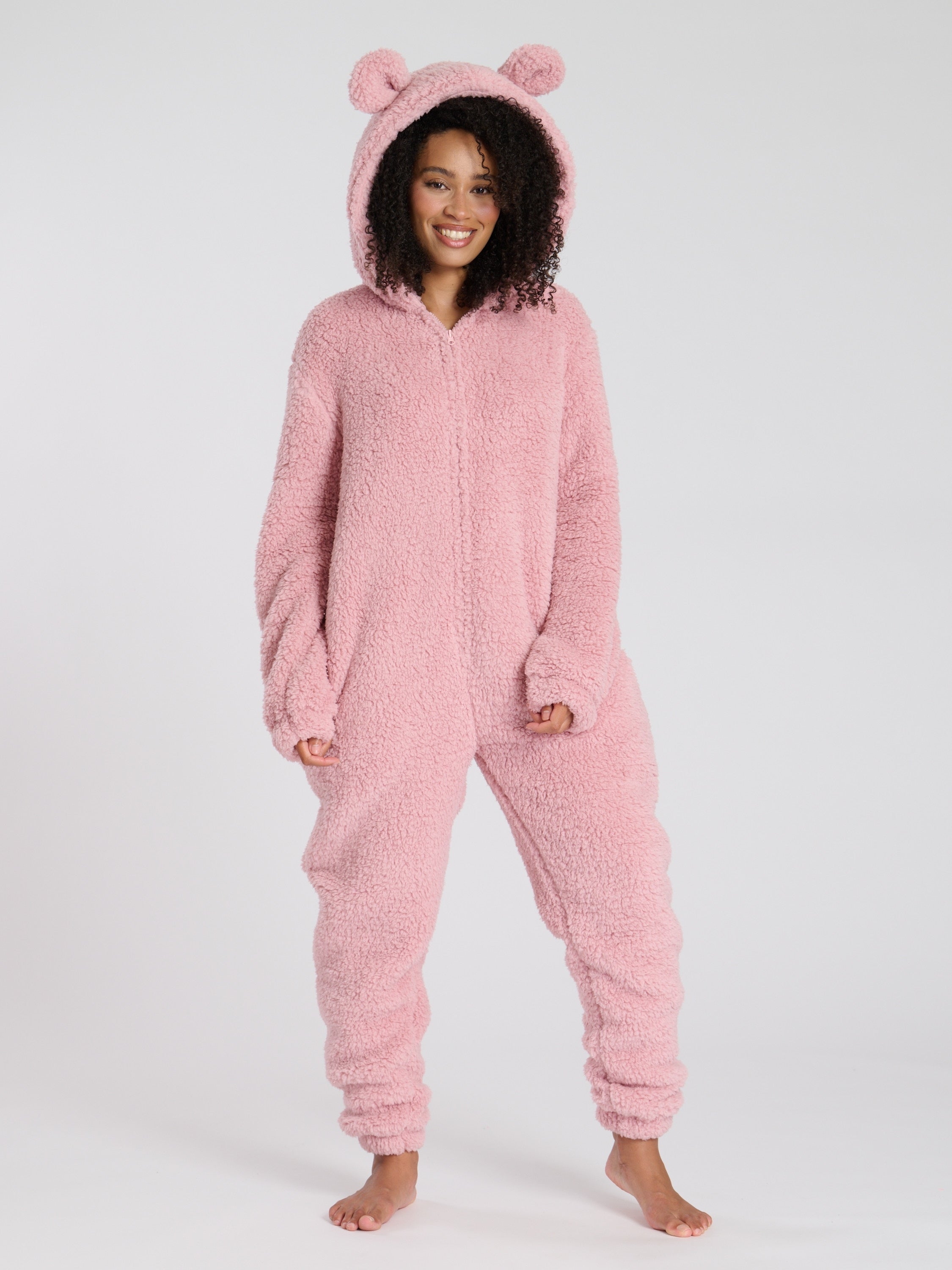A cosy all-in-one with teddy ears.