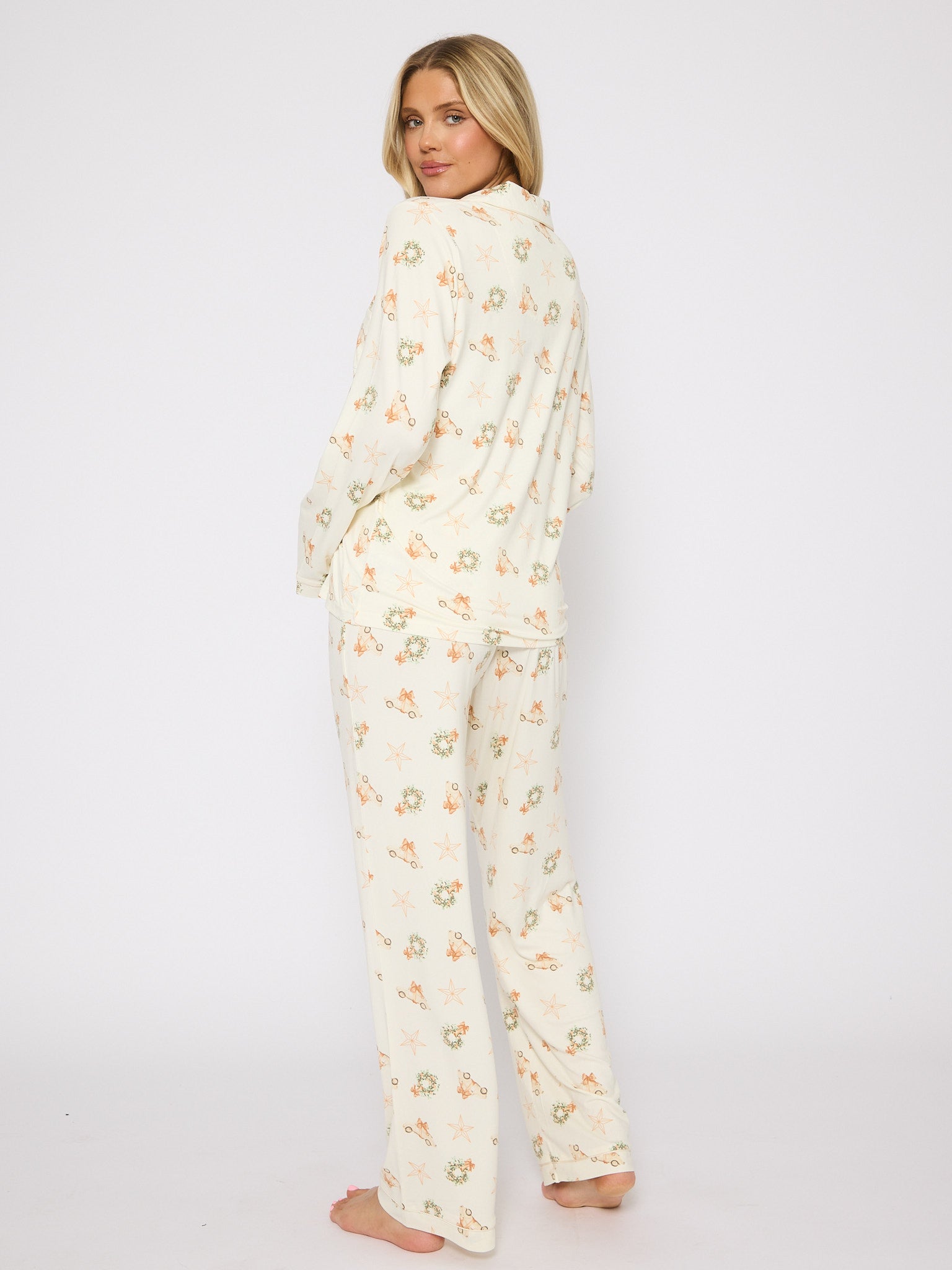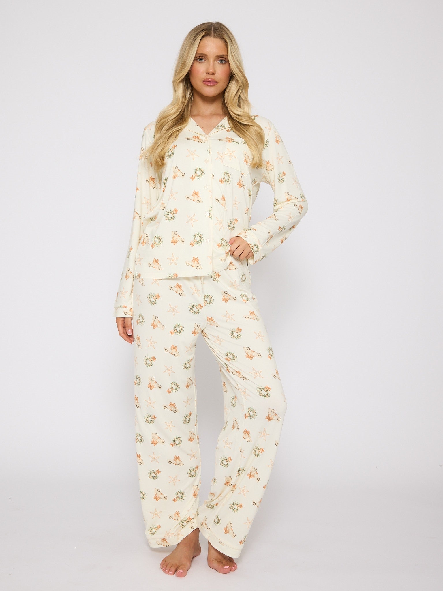 Our traditional full-length PJ set. Classic and cosy, with a festive wreath and Christmas car print.