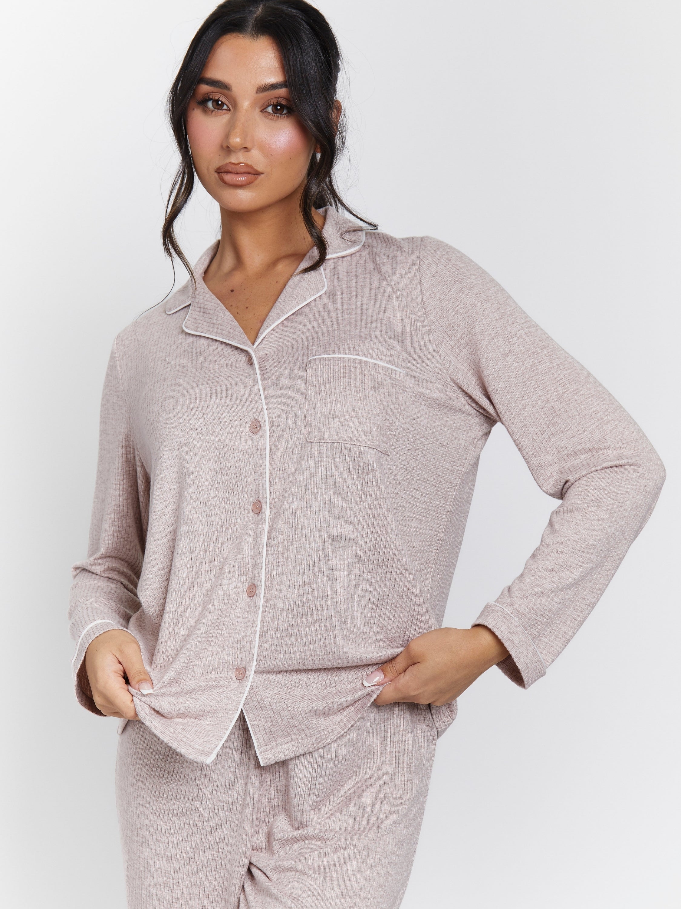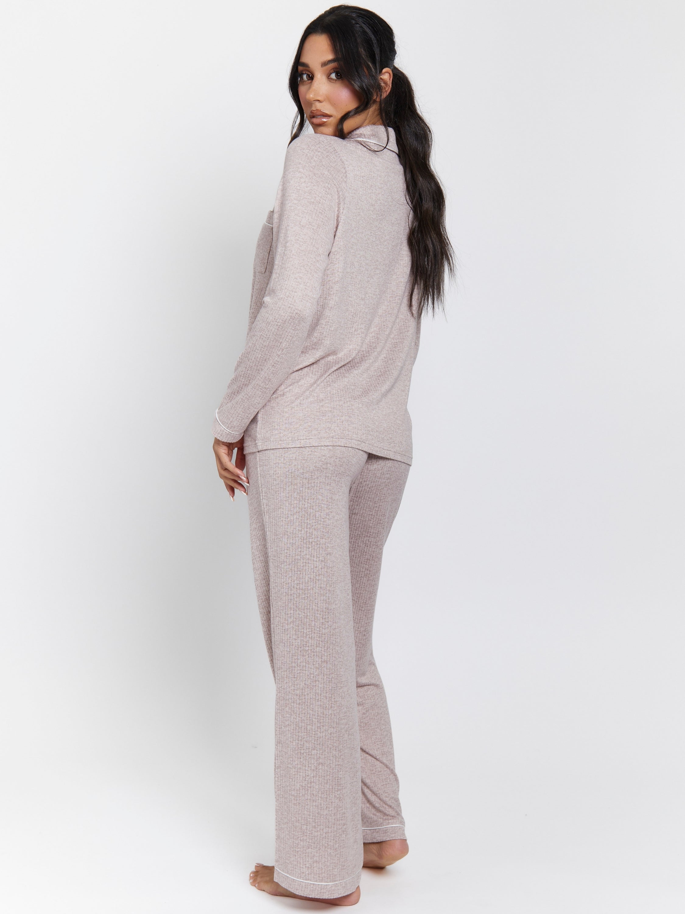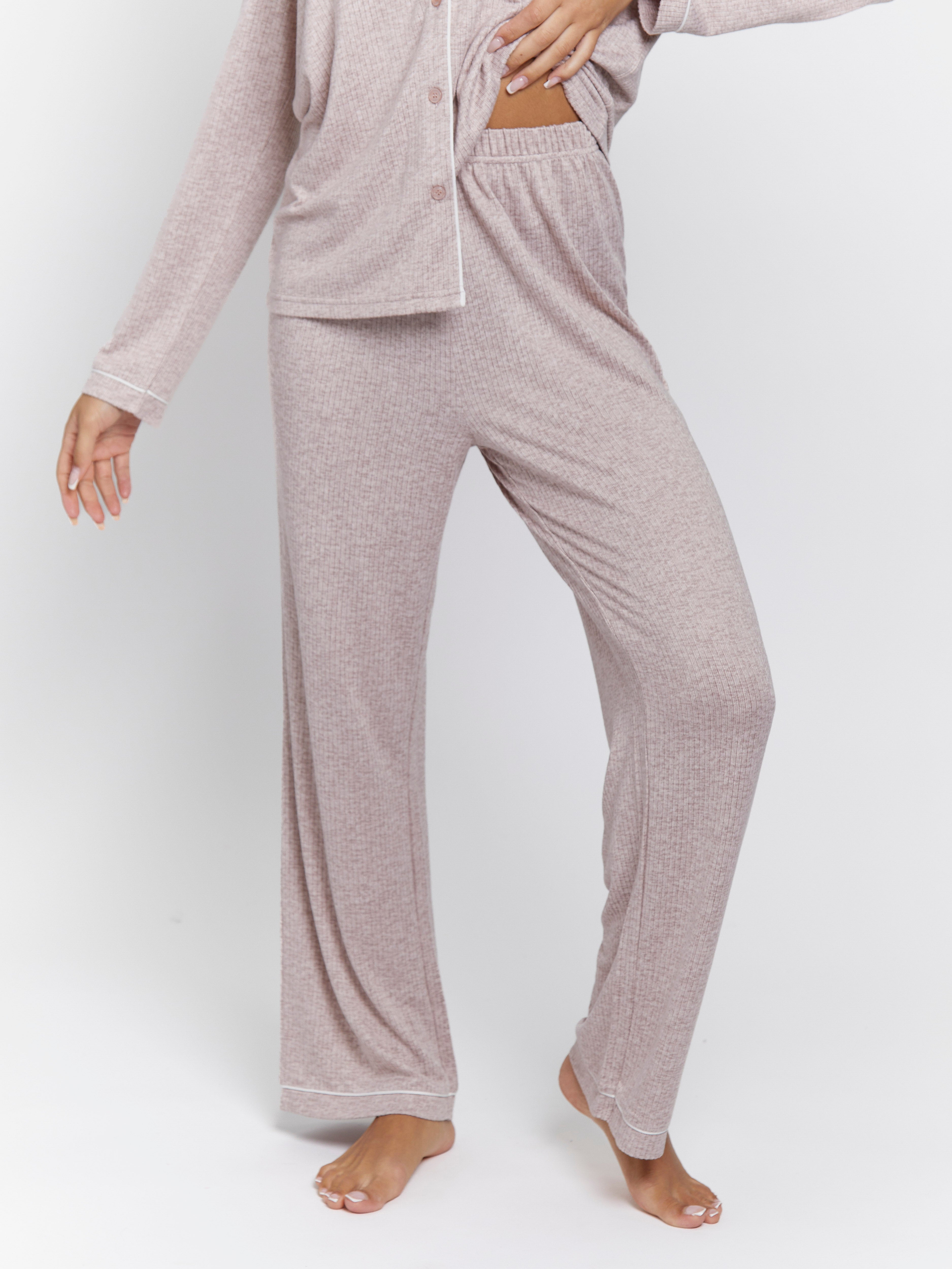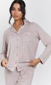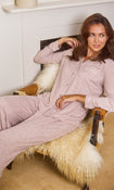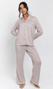 The Snooze Soft Knit Rib Pj Set In Taupe