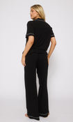 • Short sleeved button-up shirt with matching long trousers.