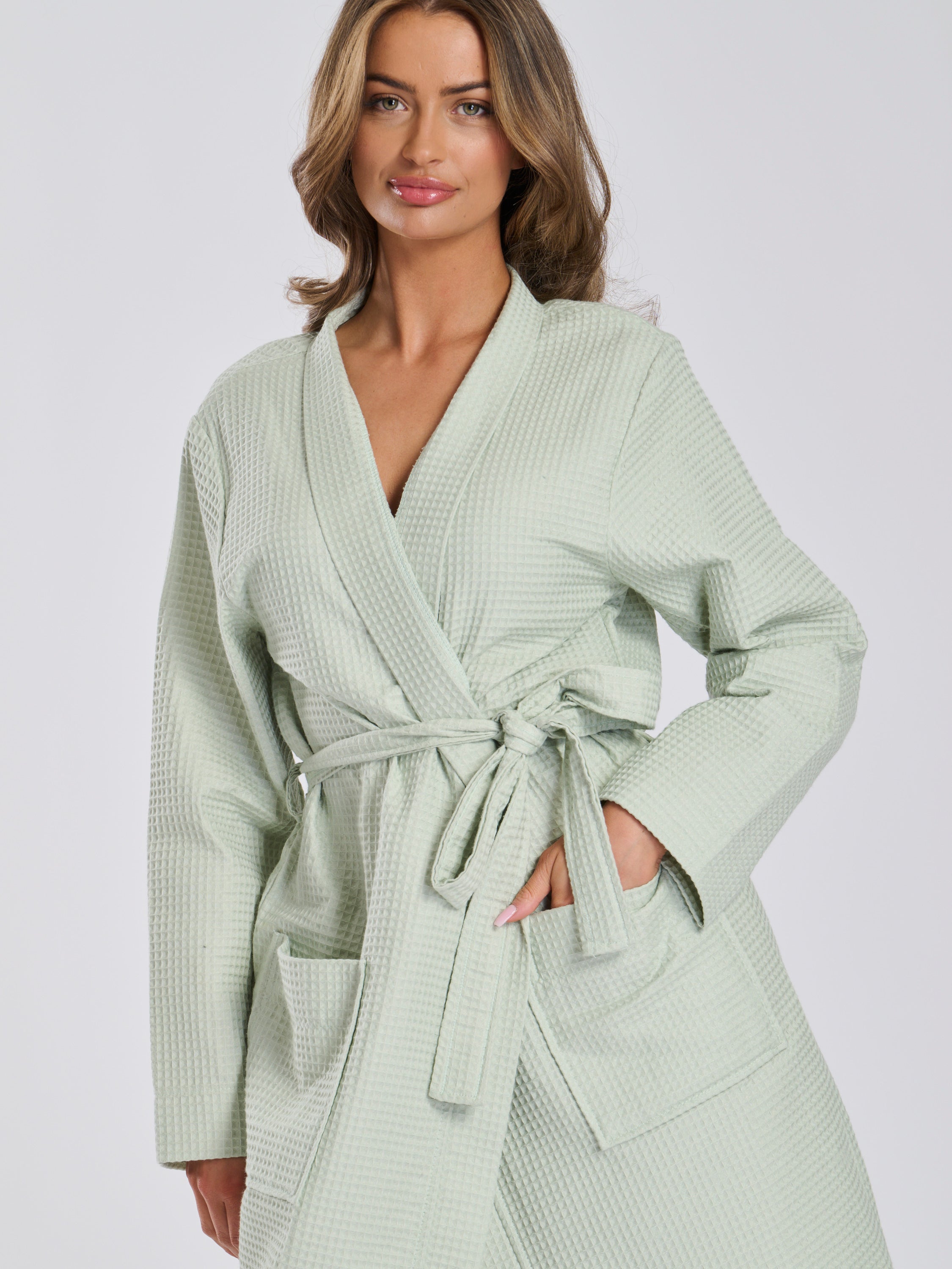 • Classic robe design with a tie waist