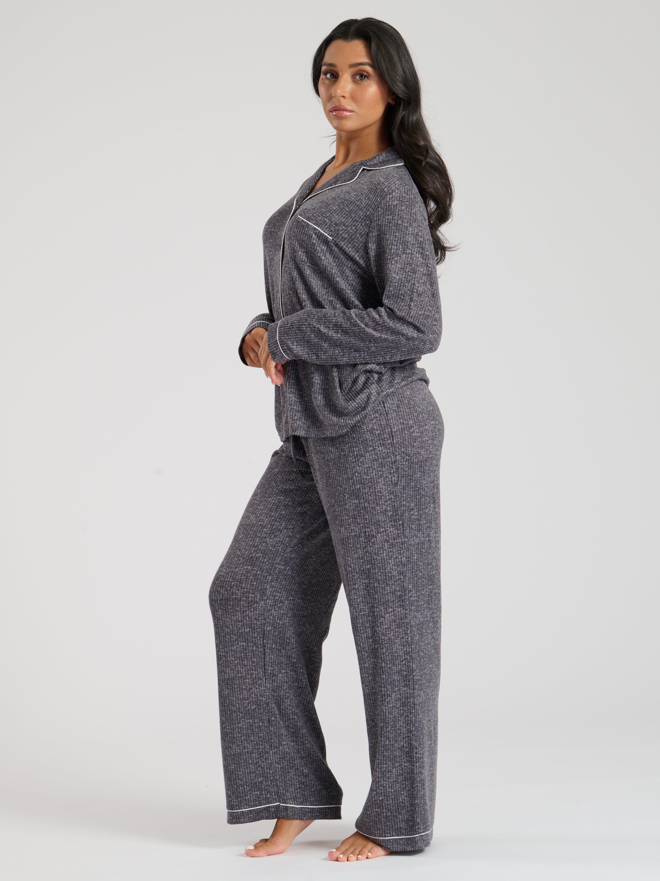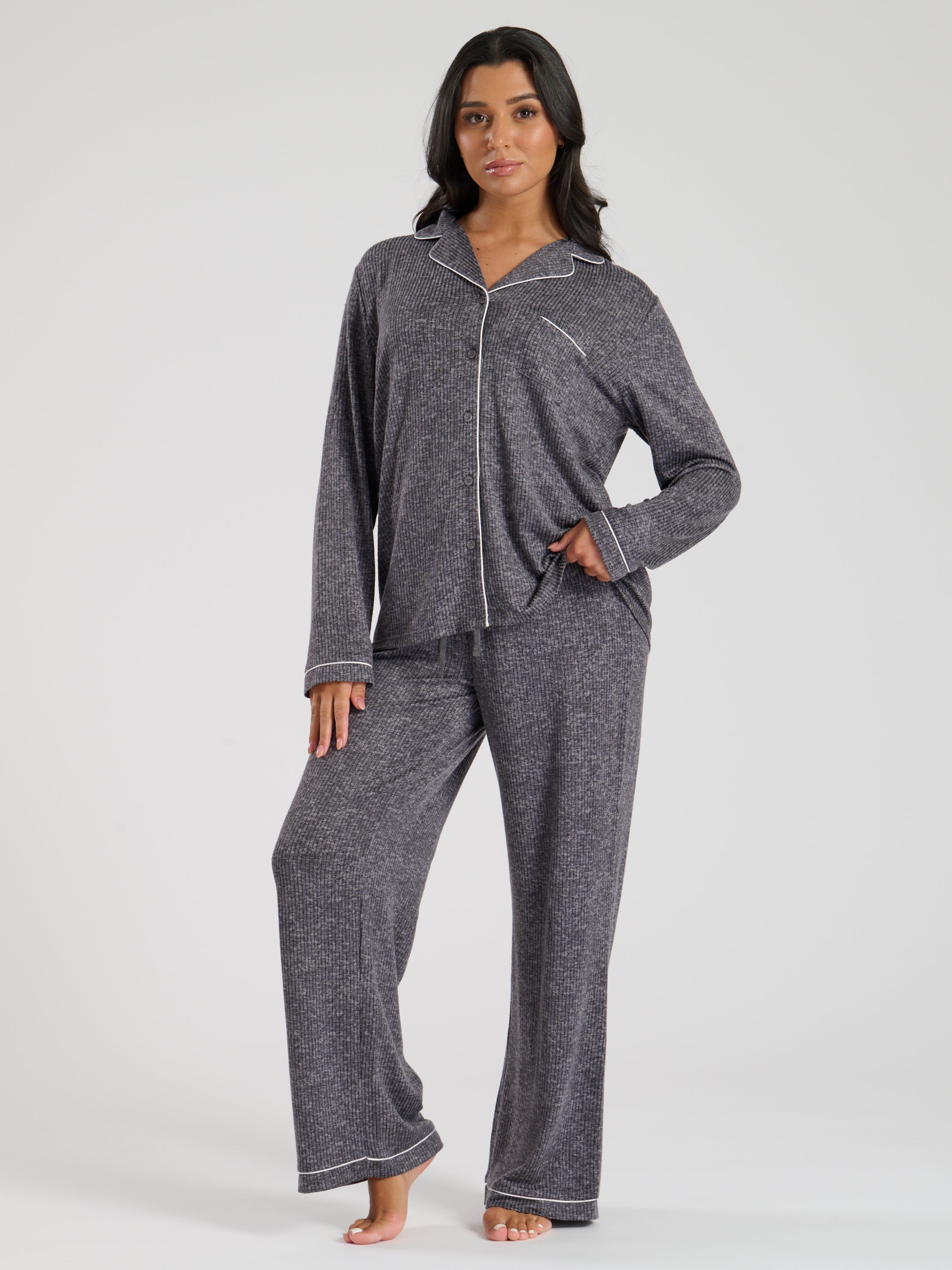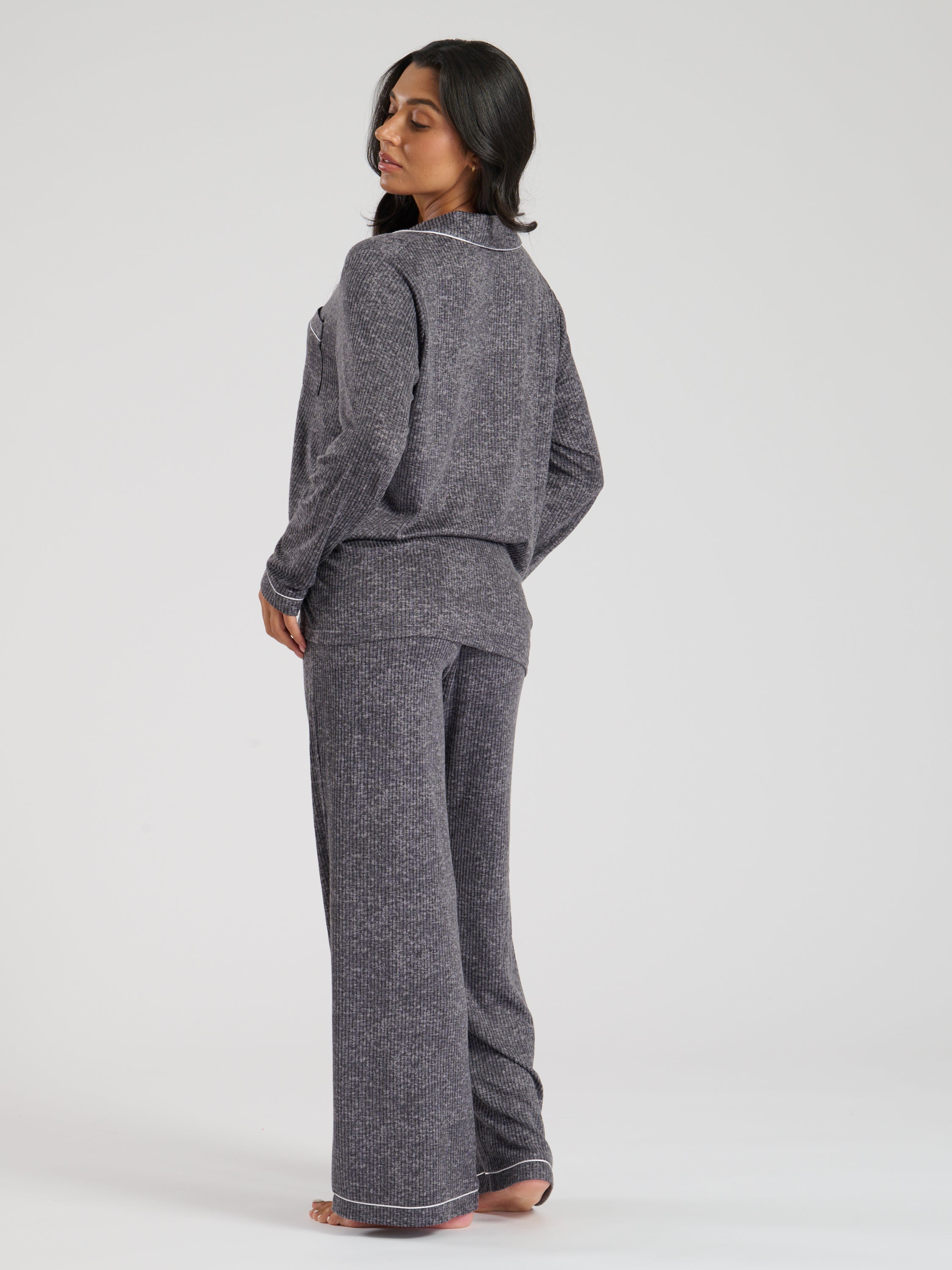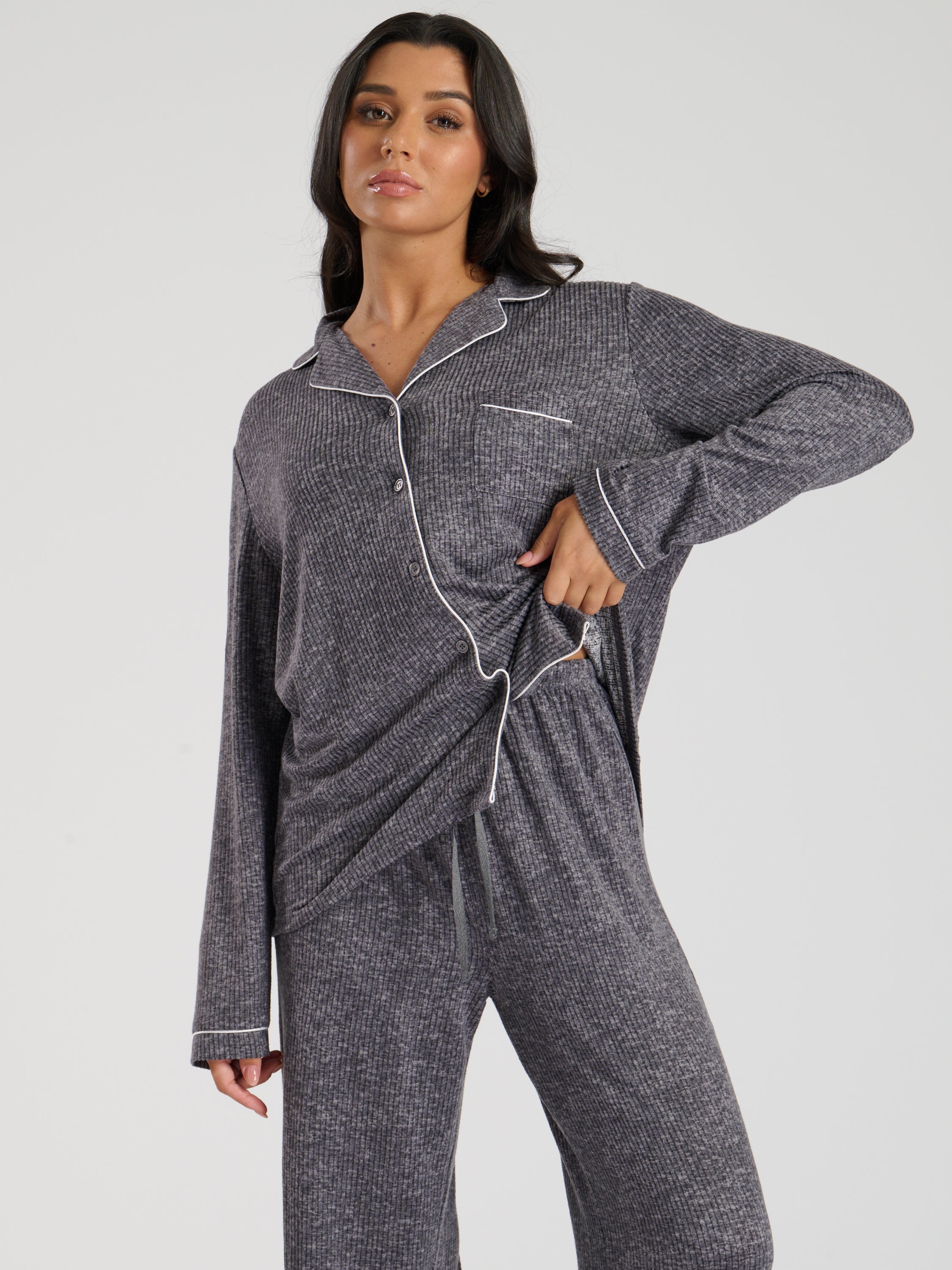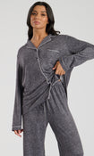 The Snooze Soft Knit Rib Pj Set In Charcoal
