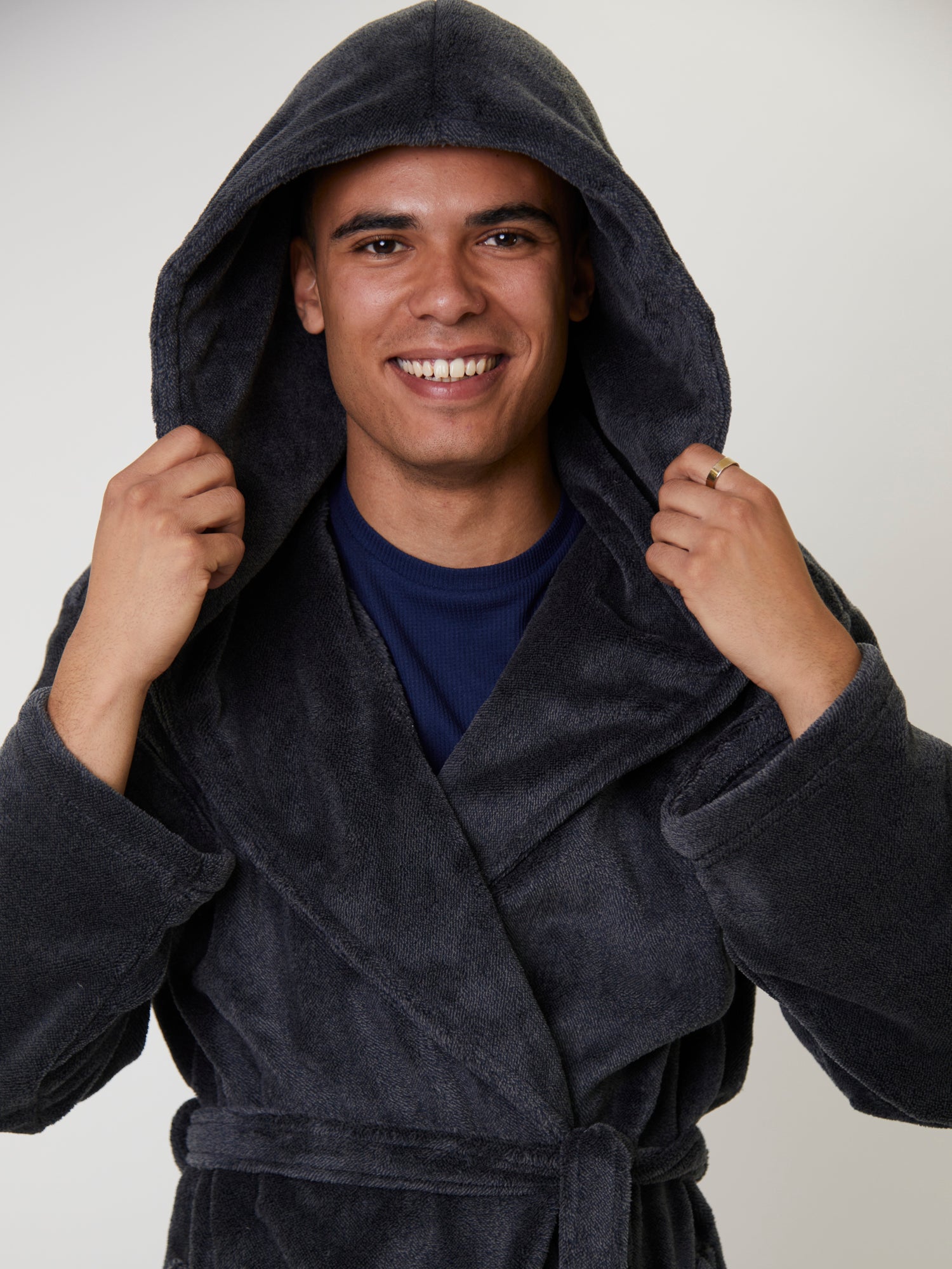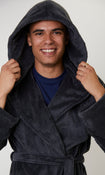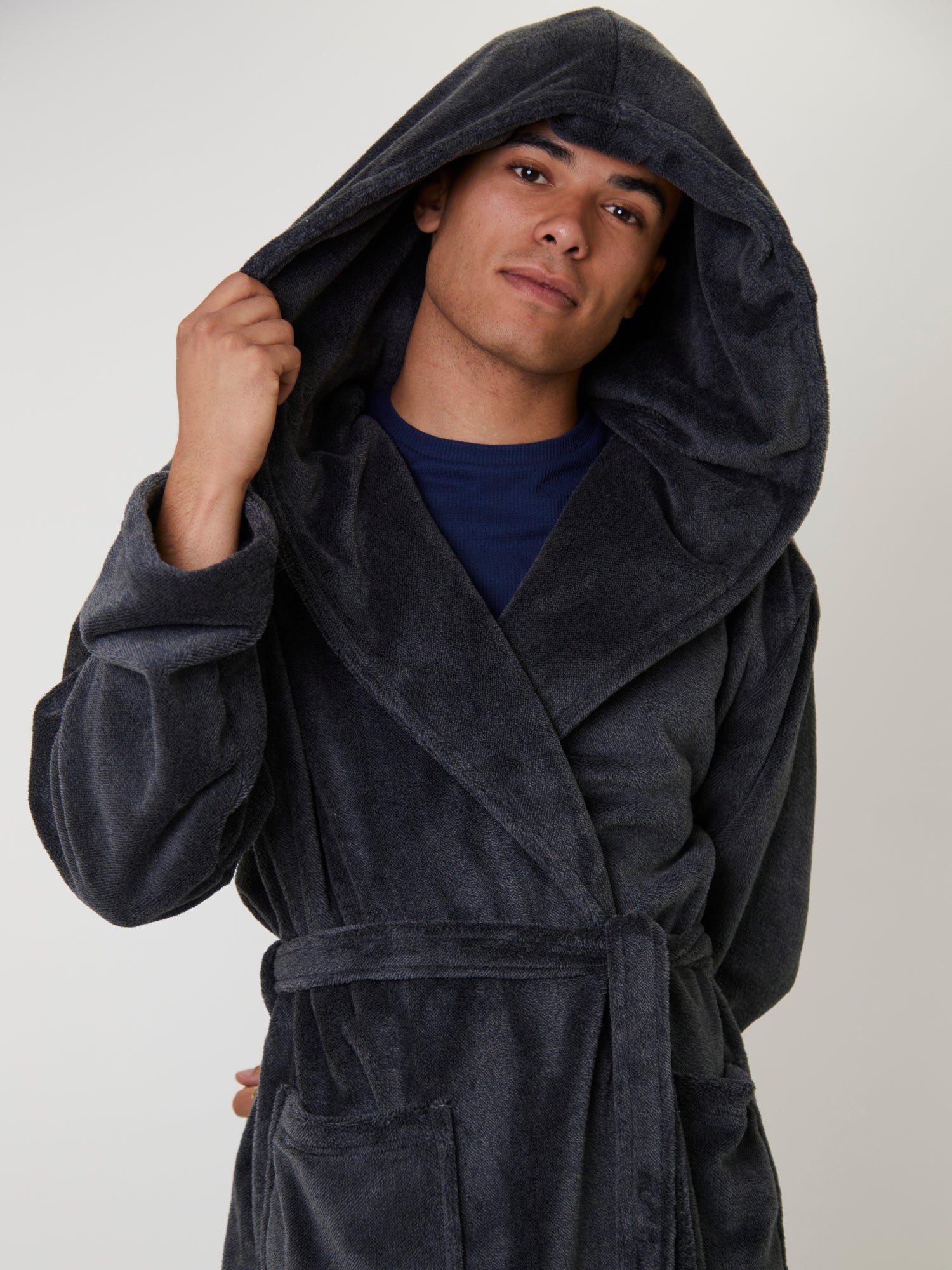 The Homey Men's Fleece Dressing Gown in Blue Grey