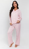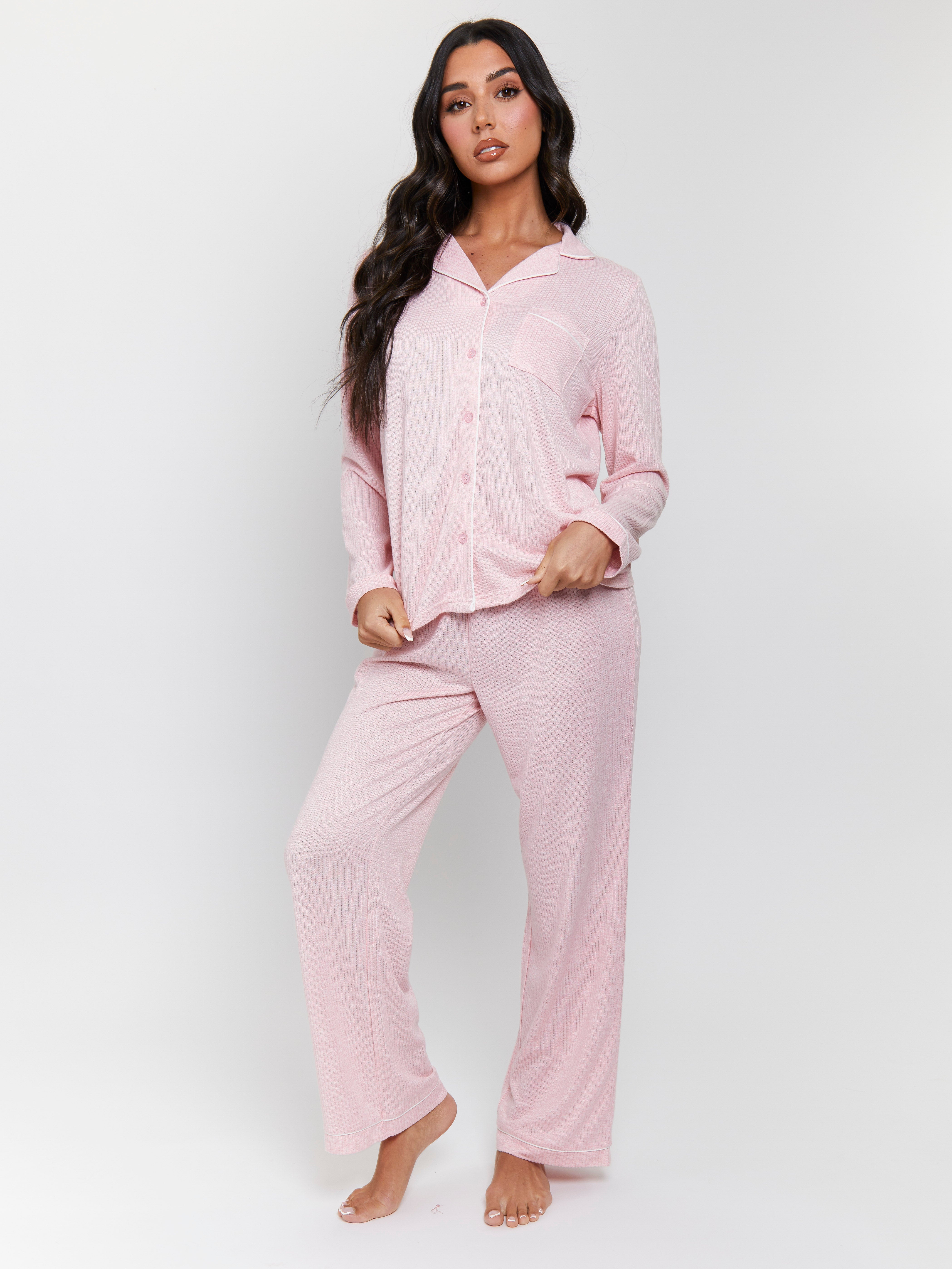 The Snooze Soft Knit Rib Pj Set In Baby Pink