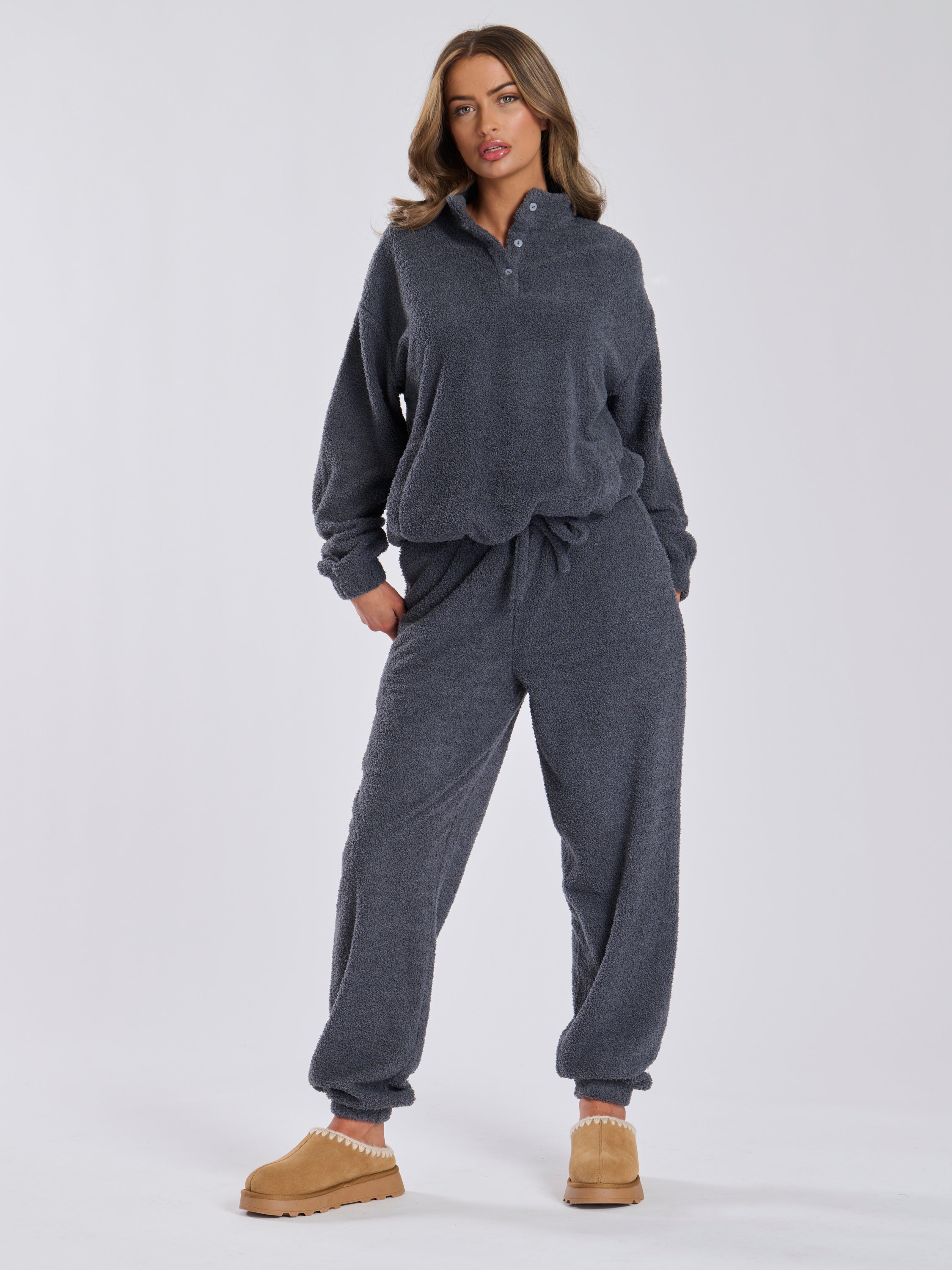Whether you're updating your own wardrobe or searching for a thoughtful gift, our SNOOZLE FUZZY JUMPER offers a touch of everyday luxury, pair with our LOUNGEABLE TOASTY JOGGERS IN CHARCOAL for a complete look.